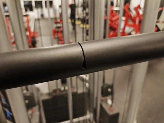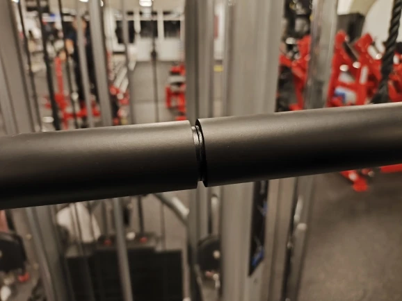 The barbell is much sturdier than the display suggests. Simply very good. It is so well padded that even heavy weights are comfortable to grip. The threads are excellent with no play at all. The gap measurements could be a bit more precise but do not detract from its purpose during training.