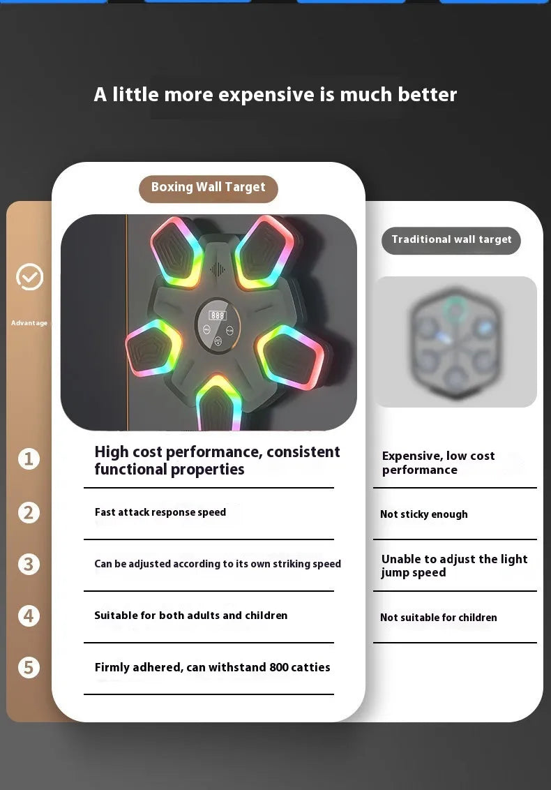 Interactive RGB LED lights, responsive light targets, improved striking accuracy, fun training