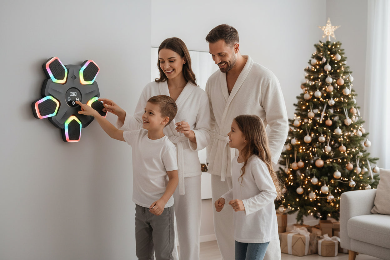 Install the SmartBox Pro 2026 Premium on a clean, smooth wall at chest height using the included high-strength adhesive; no drilling required. Fully charge the device via USB Type-C before first use; the battery lasts 4-6 hours. Download the SmartBox app, connect to your smartphone via Bluetooth 5.0, and sync your favorite music and energetic playlists. Turn on the machine, press the power button, and the RGB LEDs will light up, activating interactive targets and indicating you're ready to train. Put on the included boxing gloves and warm up your wrists and shoulders with light rotations for 2-3 minutes. Beginners: Light training mode (15-20 minutes) with slow targets for gradual habituation to striking technique. Intermediate: Standard mode (25-35 minutes) with fast targets, combinations, and intensified cardio. Advanced: Intense mode (40-50 minutes) with ultra-fast targets, complex sequences, and maximum endurance transformation. Hit the bright LED targets; the device detects hits, measures force and speed, and displays real-time statistics on your smartphone screen. Follow the rhythm of the synchronized music for maximum motivation and fun, energetic, never monotonous workouts. After your session, check your statistics in the app: total hits, average force, speed, peak, and visible progress—motivating and clear. Clean the soft, damp surface, recharge via USB, and store gloves in a dry place. Visible results in 2-3 weeks: improved speed and optimal reflexes; 4-6 weeks: enhanced cardio, toned body, and sharpened coordination. Train 3-5 times a week; regularity is essential for continuous progress and physical/mental transformation.