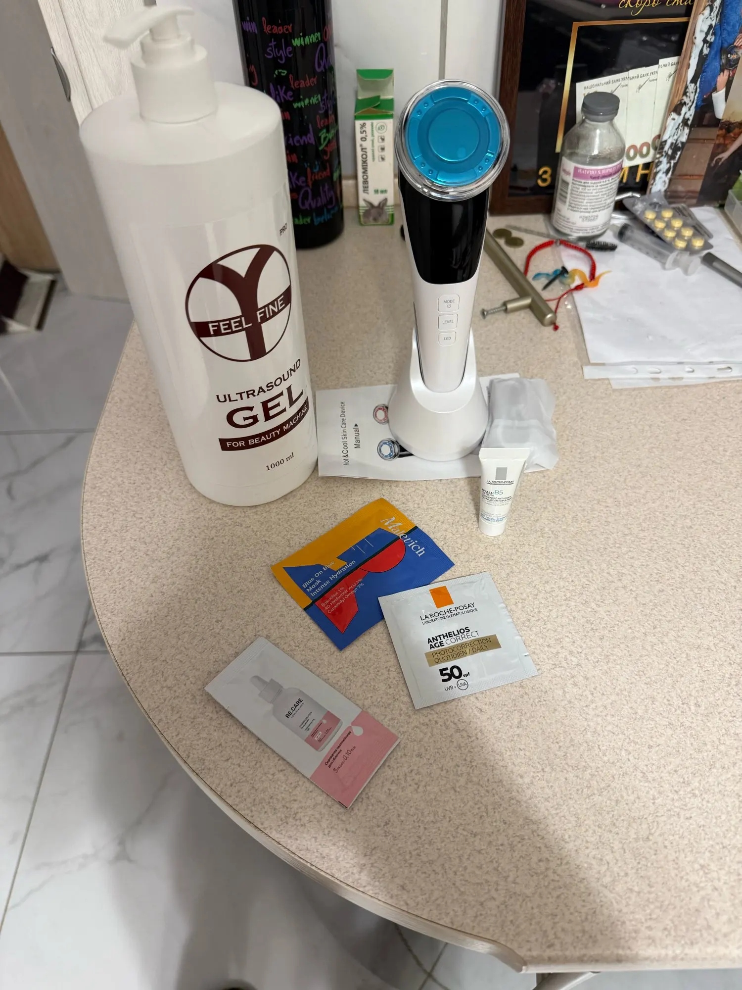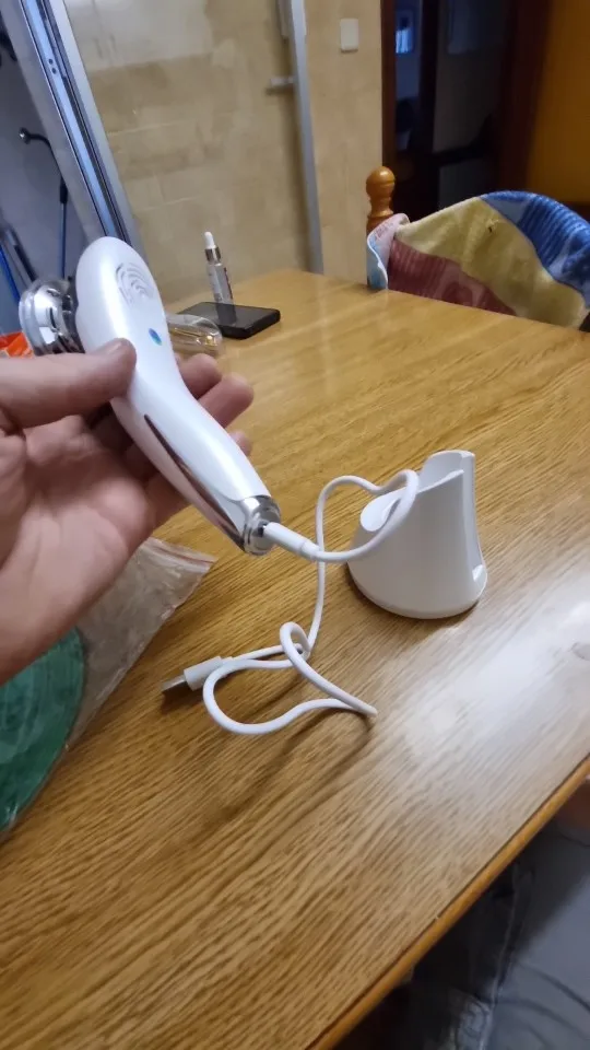 Fully charge the BeautyPro 5-in-1™ device via USB before first use. Battery life: several weeks. Fast charging: 2.5 hours. 1000mAh battery. Cleanse your face with this gentle makeup remover cleanser, leaving your skin clean, dry, and ready to receive optimal care and maximum absorption. Mode 1: Deep Cleansing. Ultrasonic vibrations at 8000 rpm and heat at 42°C remove impurities, makeup, and dead skin cells in 2 minutes, unclogging pores. Mode 2: Skincare Absorption. Apply your favorite serum and cream. Heat and vibrations maximize the penetration of active ingredients deep into the dermis in 5 minutes for optimal effectiveness. Mode 3: Anti-Aging. Red LED microcurrents and EMS stimulate collagen, tone facial muscles, and firm skin in 5 minutes, providing a visible lifting effect. Mode 4: Anti-Acne. Blue LED vibrations purify skin, reduce inflammation and blemishes in 5 minutes, leaving a clear and radiant complexion. Mode 5: Pore Tightening. Cold vibrations tone and tighten pores, setting makeup in 2 minutes, refining and smoothing texture. Use 3-4 times a week in your regular routine: Monday-Thursday: Anti-Aging Cleansing and Tightening (12 minutes). Tuesday-Friday: Anti-Acne Cleansing and Tightening (12 minutes). Sunday Complete Treatment: Cleansing, absorption, anti-aging, tightening, 14 minutes, complete transformation. Clean the device head with a soft, damp cloth after use to maintain hygiene. Recharge via USB and store on the stand. Immediate results: clean, radiant skin from the first use, luminous, fresh complexion. Optimal results with regular use (4-6 weeks): reduced wrinkles, firmer skin, cleared acne, perfected complexion, complete rejuvenation. Combine with a complete skincare routine: cleansing, serum, hydration, sun protection. Maximize anti-aging benefits, long-lasting anti-acne, optimal skin health.