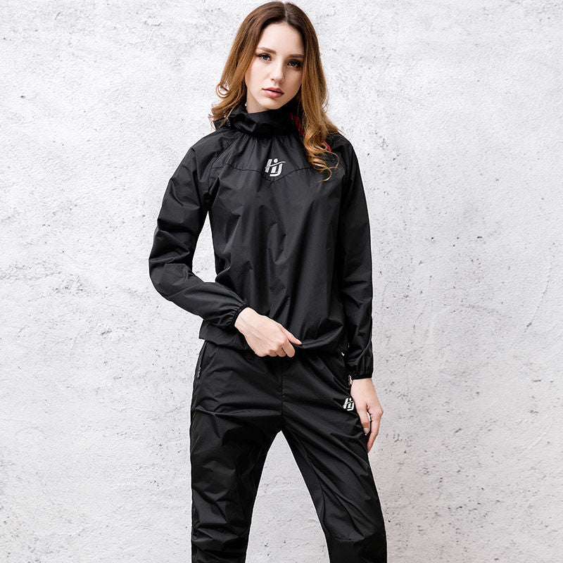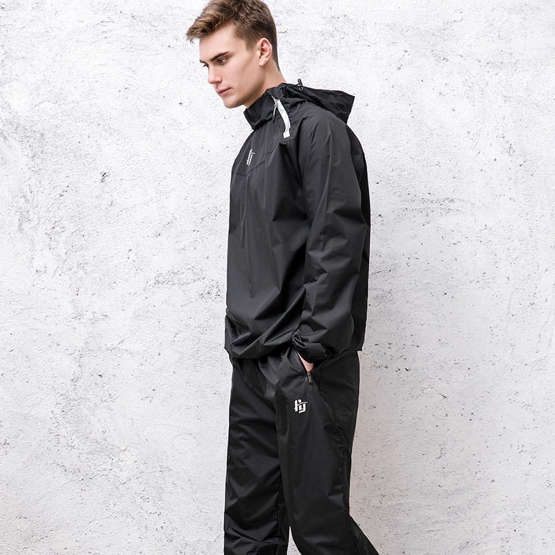 Professional vinylon fiber fabric (portable thermogenic sauna effect for workouts) Full set with long sleeves and pants (full body coverage for maximum perspiration) Moisture-wicking technology (stays dry and comfortable, not sticky during exercise) Ergonomic, fitted design (total freedom of movement for all types of exercises) 2 colors available: Black, Gray - 5 sizes: M, L, XL, 2XL, 3XL