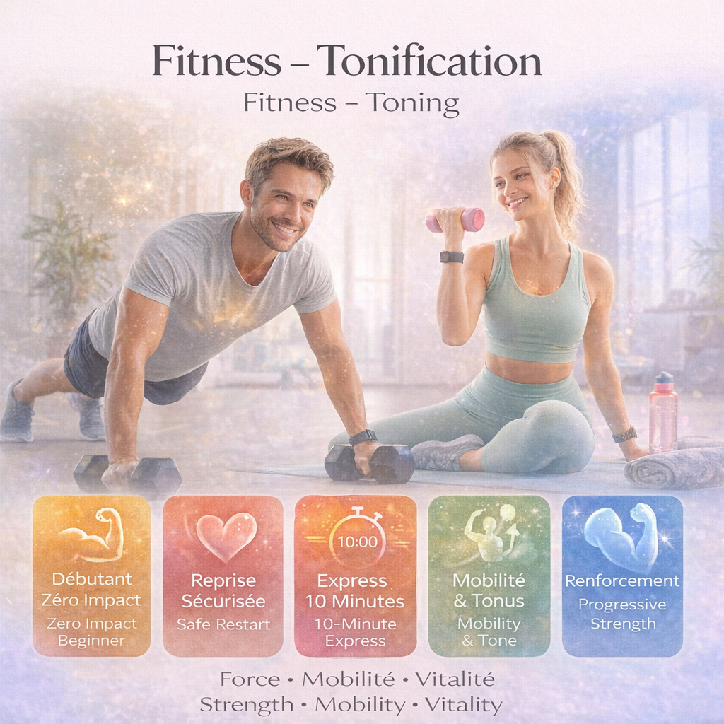 Fitness – Tonification Retrouvez une routine simple, efficace et motivante pour renforcer...